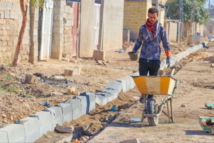 شهدت ناحية شيخ سعد تواصل العمل في تنفيذ مرحلة رصف المقرنص والكاربستون ضمن أعمال مشروع تطوير شوارع حي الجوادين في الجانب الأيسر للمدينة .