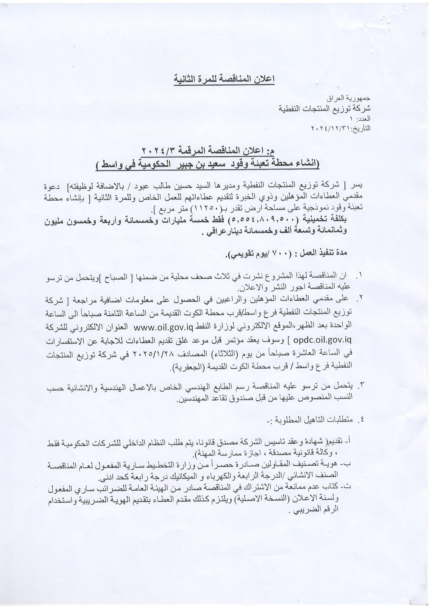 ((مناقصة انشاء محطة وقود سعيد بن جبير الحكومية في واسط)) تصفّح المقالات المياحي يعقد اجتماعاً لمناقشة سبل استكمال اجراءات مشاريع المطور العقاري ، وتوسعة خططها محافظ واسط يعلن عن الشروع بتطبيق الخطة الامنية والخدمية الخاصة بزيارة الامام الكاظم عليه السلام