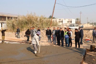 تابع محافظ واسط د. محمد جميل المياحي تنفيذ مراحل الصب بالخرسانة الإسمنتية المسلحة لمشروع شوارع السجاد و الثقلين ، ضمن أعمال مشروع تاهيل حي الجهاد بمدينة الكوت .