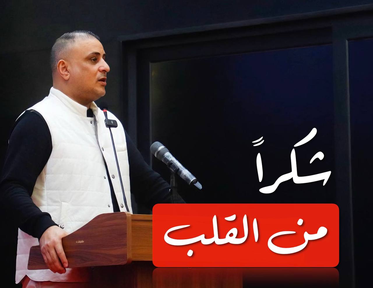 “لا يسعنا الا أن نتقدم بأروع كلمات الشكر والعرفان والامتنان لكل من شاركنا بهذه المناسبة العزيزة على قلوب الواسطيين ،بدايةً من فخامة رئيس جمهورية العراق المحترم والسادة الوزراء والسفراء وجميع الشخصيات المحترمة التي قدمت التهاني سواء بالحضور والمشاركة أو بارسال برقيات التهاني ولكل الذين أعربوا عن تضامنهم ومشاركتهم ومشاعرهم بفعل أو تفاعل أو من خلال كلمة مع واسط وأهلها الكرام ..