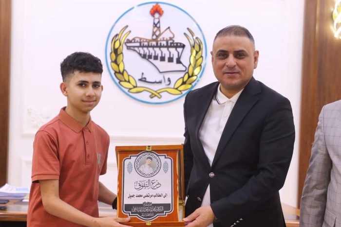 وبدوره كرم هذا الطالب المجد،معرباً عن تقديره لهذه العائلة الكريمة التي أسهمت بشكل مباشر على مكنت ابنها من تحقيق نتائج باهرة ومتميز،فيما اثنى بالشكر و التقدير العالي لمدرسته واساتذته لاهتمامهم بالطلبة وتمكينهم من نيل المراتب المتقدمة ولكل من يدعم المسيرة التربوية في المحافظة .