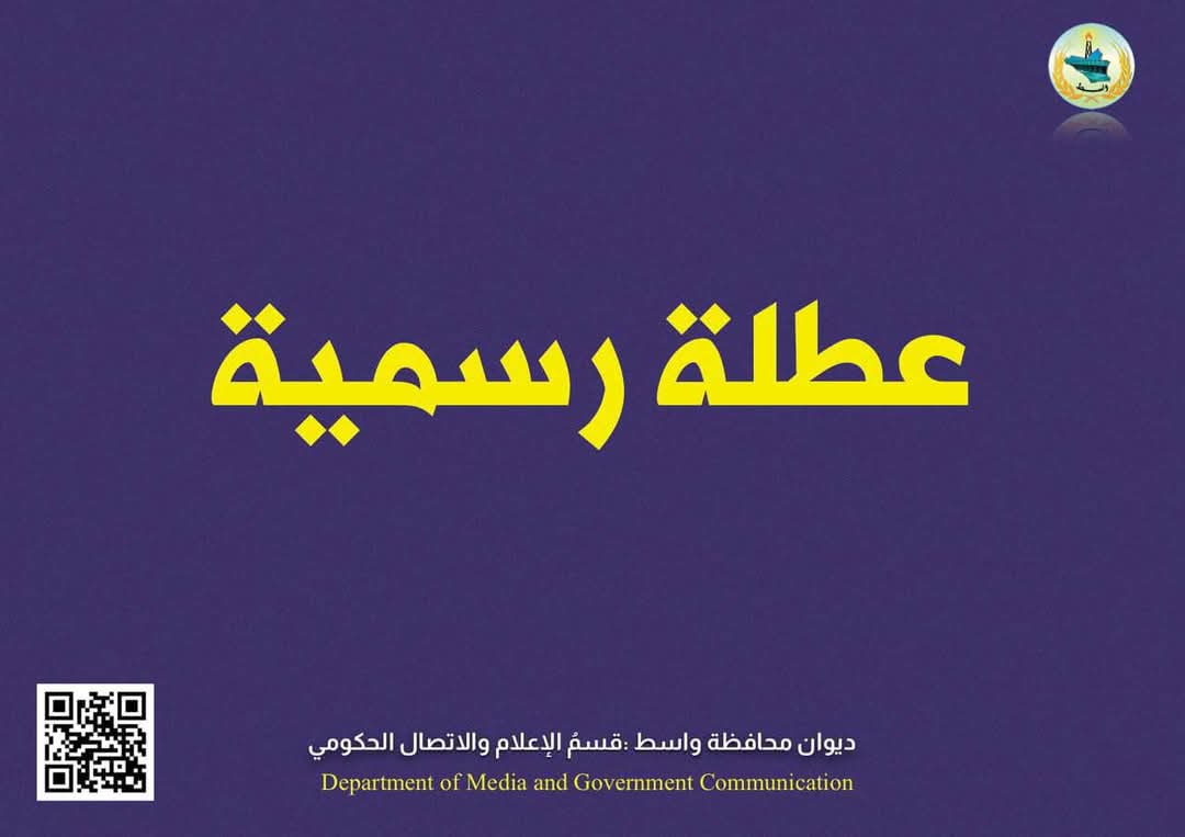 بمناسبة ولادة منقذ البشرية الامام الحجة ابن الحسن (عجل الله فرجه الشريف) قرر مجلس محافظة واسط اعتبار يوم غد الخميس الموافق 13 شباط عطلة رسمية في محافظة واسط.