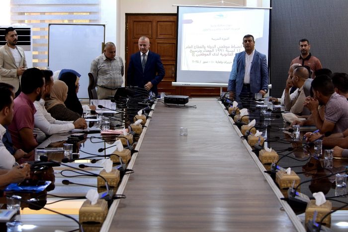 وذكر مستشار محافظ واسط لشؤون اللامركزية والادارية / مدير قسم بناء القدرات والتطوير والتدريب في المحافظة الحقوقي فواز عبد الرضا ،أن هذه الدورة تشتمل محاورها على محاضرات مهمة يلقيها الحقوقي زاهر محمد جمال تتضمن شرحاً اتفاصيل قانون انضباط موظفي الدولة والقطاع العام رقم (14)لعام 1991المعدل وترسيخ الثقافة القاونية لدى الموظفين لمدة شهر ،إذ استهدفت جمبع الأختصاصات والدرجات الوظيفية في ديوان المحافظة ودوائر الدولة ..