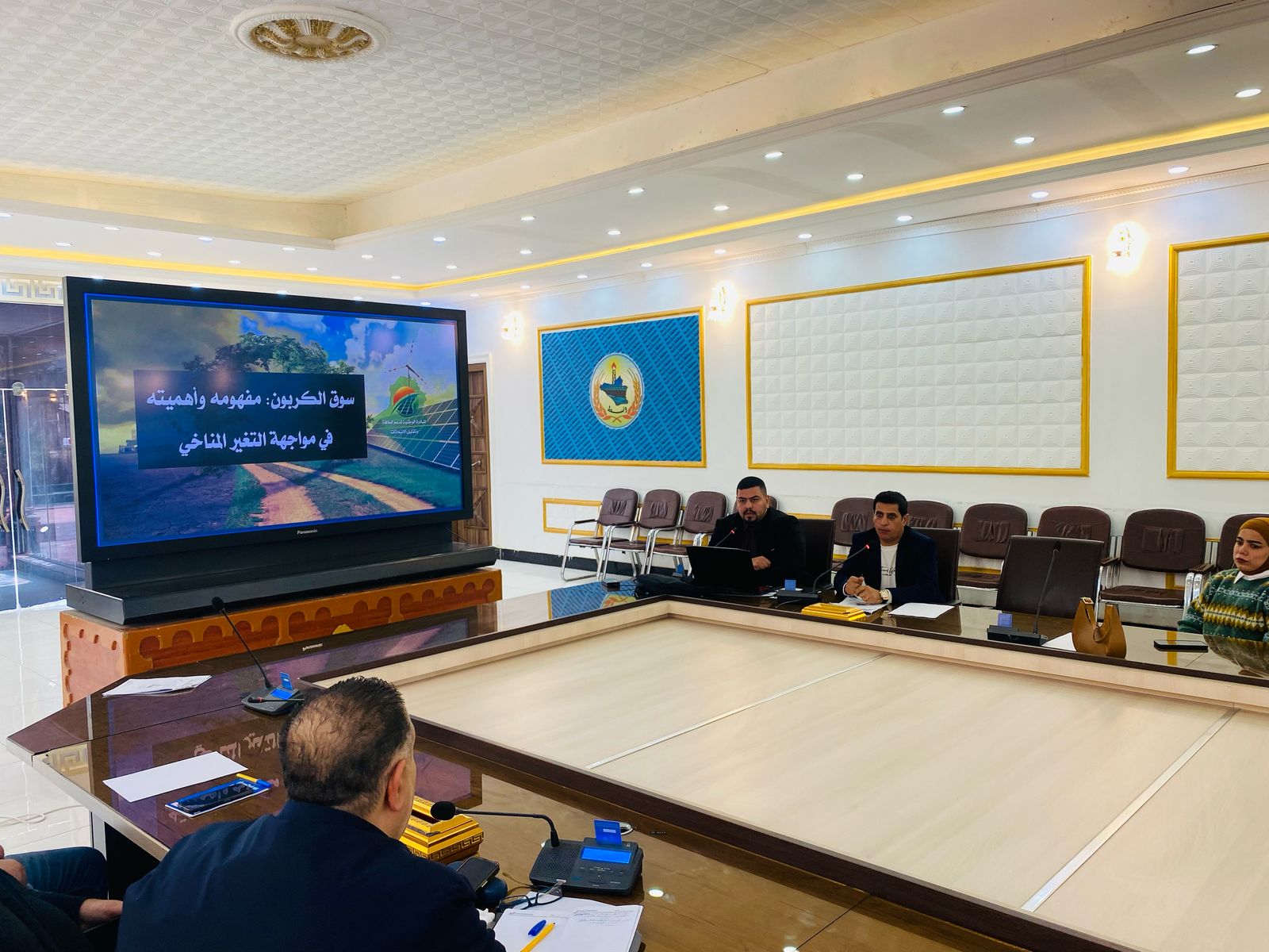 وتلتها محاضرة حول سوق الكاربون وتأثيراته على التغيير المناخي، حيث شملت استعراضاً لمفهوم سوق الكاربون وأهميته في مواجهة التغيير المناخي وانواعه ومايحيط بهذا المجال..