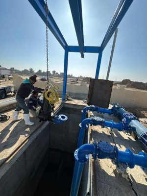 إذ تتواصل في متابعتها لمراحل العمل وبهمة عالية في مشروع محطة الرفع لمجاري مياه الأمطار في ناحية الدبوني التي وصلت نسبة الإنجاز فيه الى 98 % .