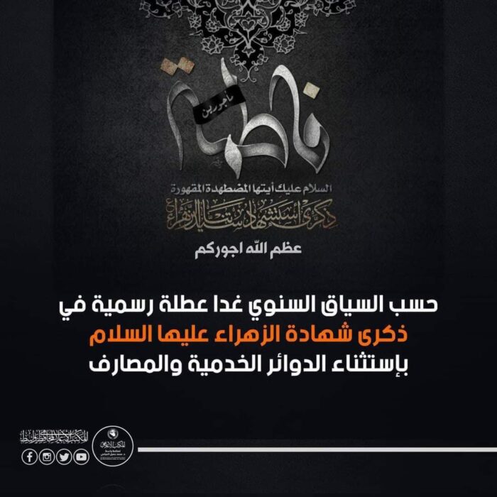 ويأتي ذلك ضمن السياق المتبع لإتاحة الفرصة أمام المؤمنين لأداء مراسم الزيارة ، فيما حدد أن العطلة لا تشمل الدوائر الخدمية والمصارف .