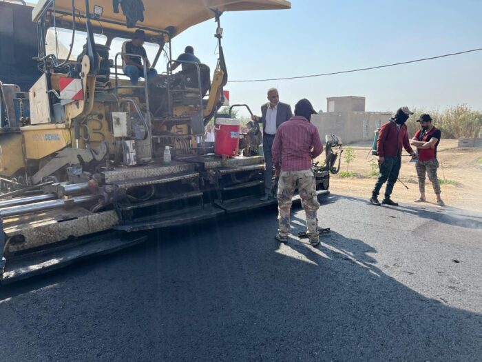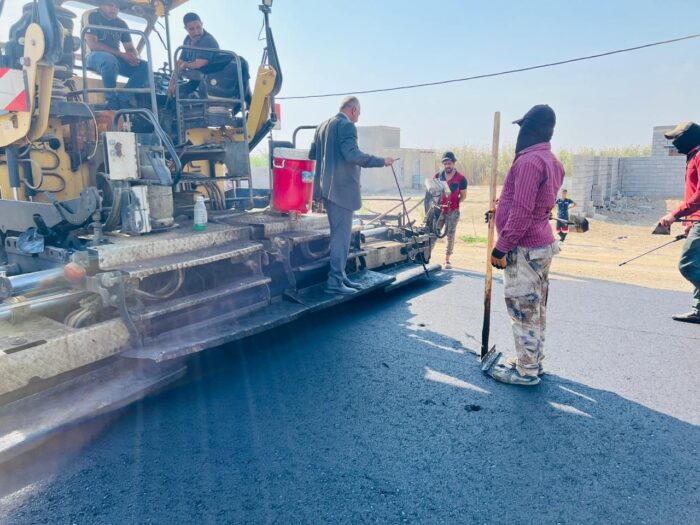 اذ اطلع على مرحلة الإكساء بطبقة الاسفلت لمشروع تطوير مدخل الناحية ،فضلا عن تفقده لمراحل العمل في مشروع تطوير طريق قرية (9)..
