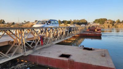 وأكدت مديرية الطرق أنها بصدد اعداد التصاميم الأساسية الخاصة بإنشاء جسرٍ معلقٍ يكون بديلاً عن جسر برينج (العائم ) في قضاء العزيزية.