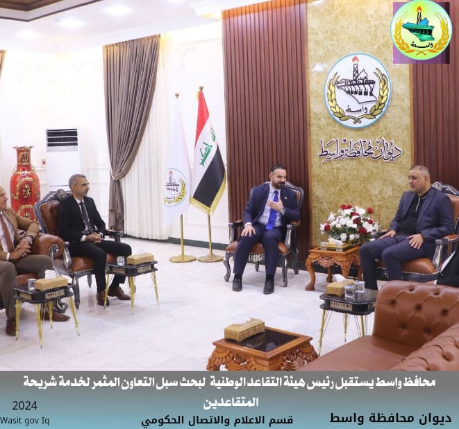 استقبل محافظ واسط د.محمدجميل المياحي ، رئيس هيئة التقاعد الوطنية السيد ماهر البياتي في ديوان المحافظة..
