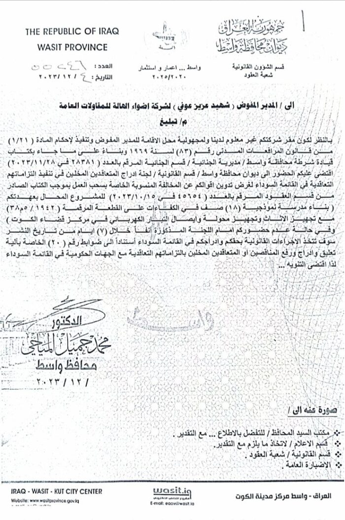 تفقد محافظ واسط د.محمد جميل المياحي خلال جولة ميدانية موقع أعمال المرحلة الاولى لمشروع توسعة وتأهيل طريق( كوت-بغداد )، التي انطلقت من مدينة الكوت حتى تقاطع الزبيدية والمنفذ من قبل…