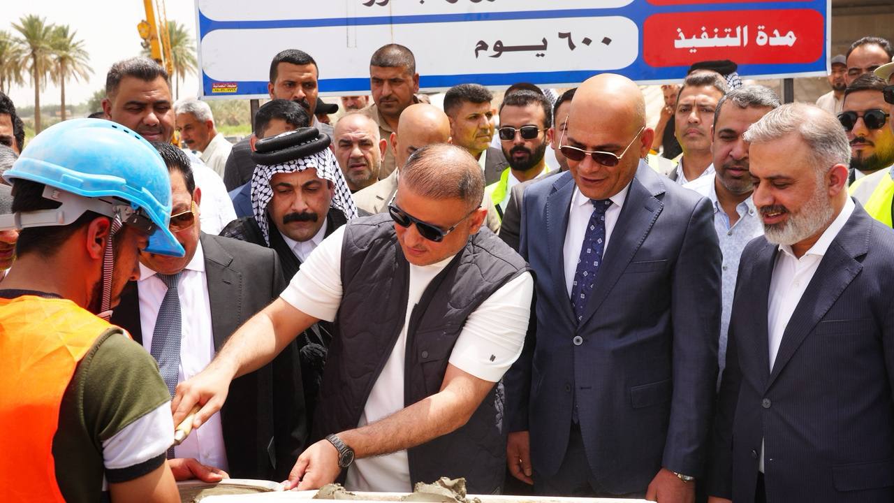 المياحي يضع حجر الاساس لمشروع تشييد جسر النعمانية الكونكريتي الثاني بحضور مدير عام الطرق والجسور