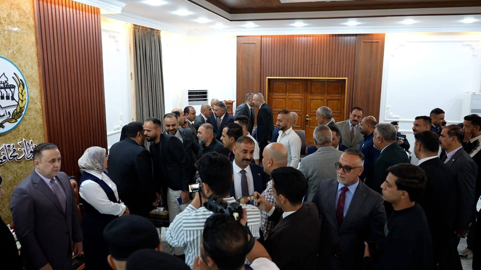 شهد ديوان محافظة واسط توافداً واسعاً لشخصيات سياسية واجتماعية وأكاديمية وأمنية، إضافة إلى شيوخ ووجهاء العشائر، والمواطنين، والكوادر المتقدمة في ديوان المحافظة، لتقديم التهاني إلى السيد محافظ واسط الأستاذ علي حسن سليمون، بمناسبة تسنمه مهام منصبه محافظاً للمحافظة، بحضور رئيس مجلس محافظة واسط الدكتور عادل محمد الفيلي، ونائب رئيس المجلس الأستاذ حيدر عجاج الشمري، وعدد من أعضاء مجلس محافظة واسط.