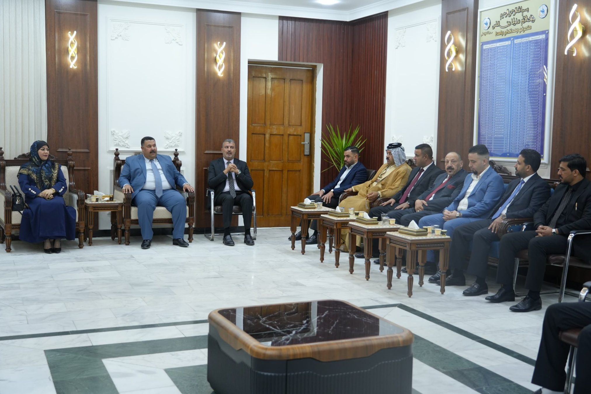 وقدم الوفد تهانيه بمناسبة تسنم السيد المحافظ مهام عمله، ناقلًا تحيات ودعم معالي رئيس مجلس الوزراء المحترم لمحافظة واسط.