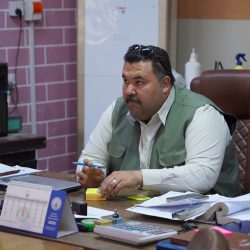 استمرار مراحل صب الاساس بالخرسانة الاسمنتية المسلحة لمشروع بناء مركز صحي في منطقة الزنابرة بحي الجهاد في مدينة الكوت
