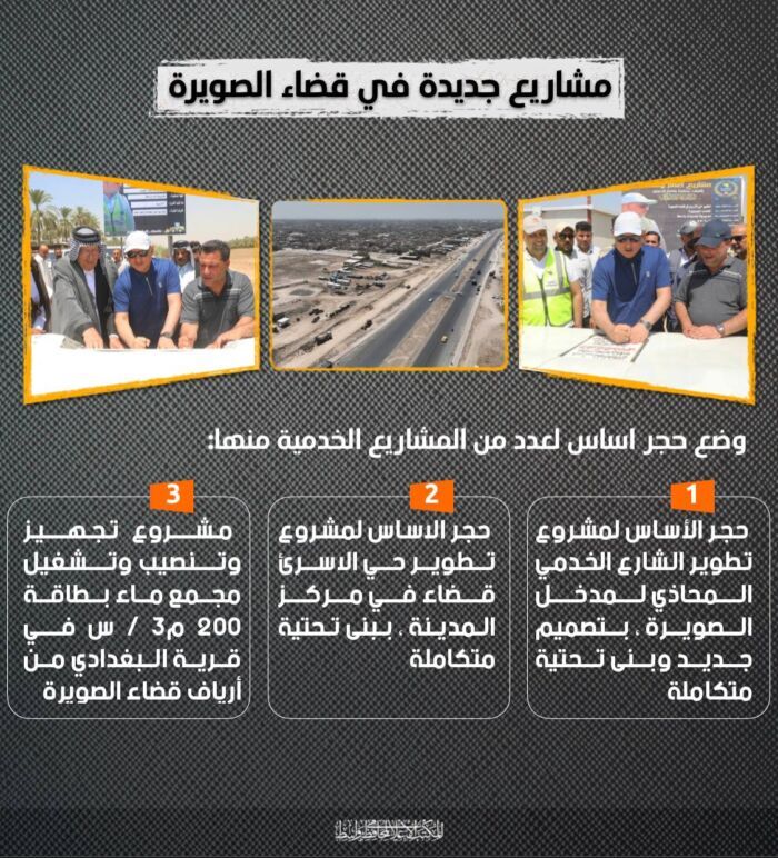 محافظ واسط يتابع اعمال الاكساء بطبقة الاسفلت النهائي ضمن أعمال فقرات مشروع تطوير مدخل مدينة الكوت من جهة محافظة ميسان لجانبي الذهاب والاياب