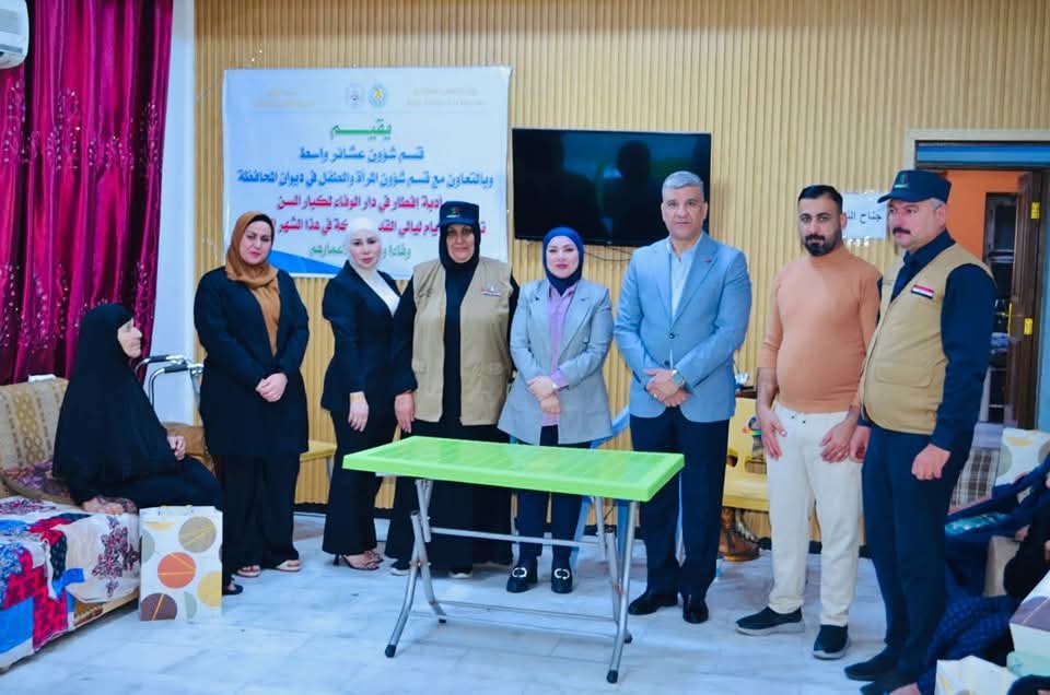 قسم شؤون المرأة والطفل في ديوان المحافظة يقيم مأدبة افطار رمضانية في دار الوفاء لكبار السن بمدينة الكوت
