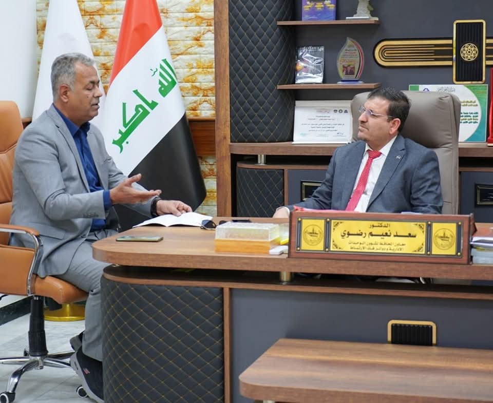 بهدف تعزيز سبل التعاون المشترك لاجل دعم قطاعي الشباب والرياضة في المحافظة،التقى الدكتور سعد العوادي معاون محافظ واسط لشؤون الوحدات الإدارية ودوائر فك الارتباط بمدير شباب ورياضة واسط السيد علاء…