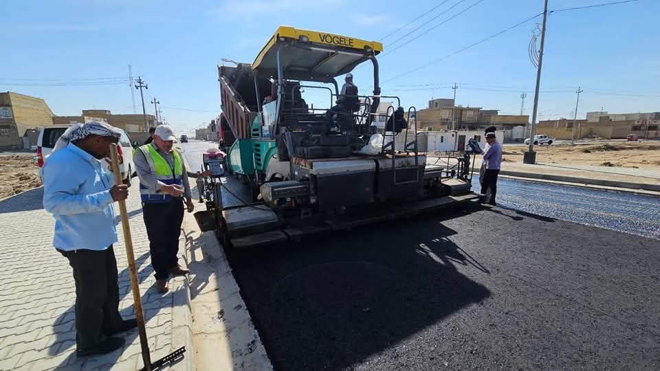قضاء الحي يشهد الاستمرار بتنفيذ مراحل الاكساء بطبقة الأسفلت النهائية، لشوارع منطقة الراشدية