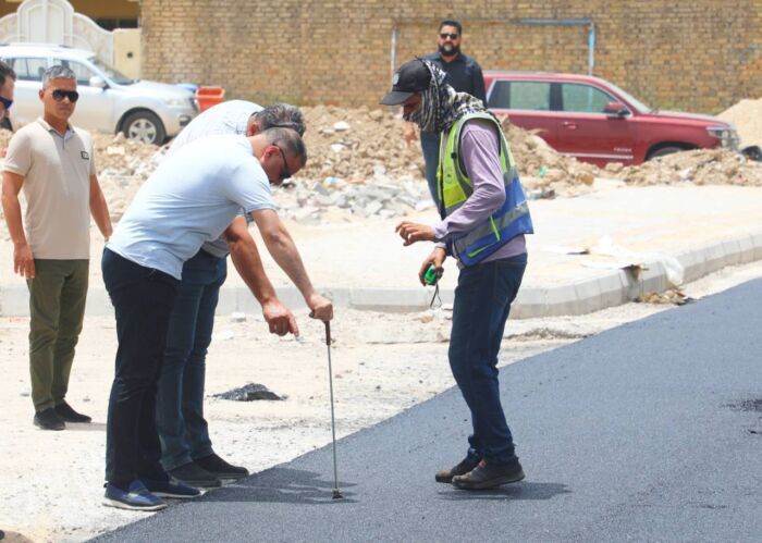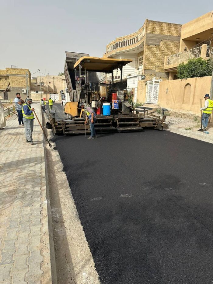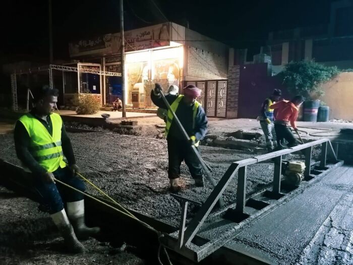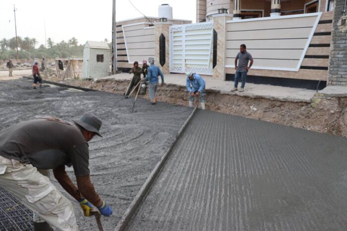 الاستمرار بمراحل الصب بالخرسانة الاسمنتية المسلحة لشوارع حي العروبة في قضاء العزيزية