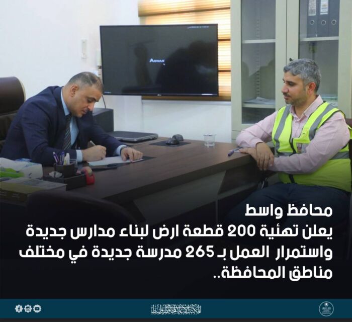 محافظ واسط يعلن تهئية 200 قطعة ارض لبناء مدارس جديدة