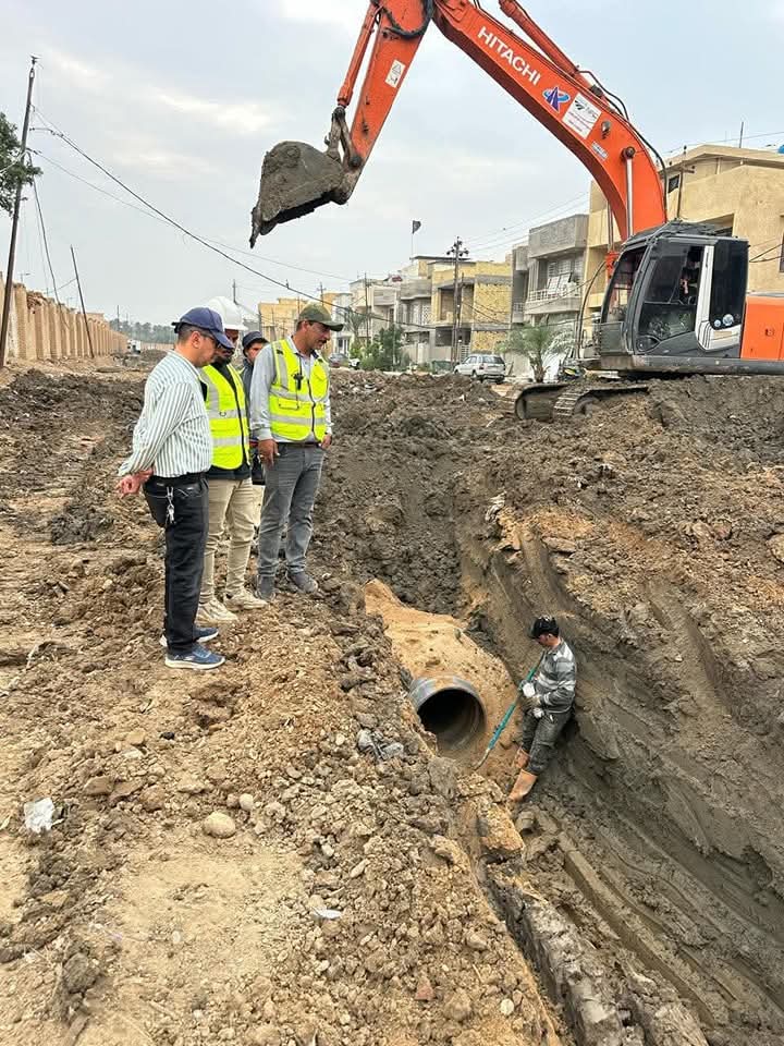 دائرة المهندس المقيم لمشروع تاهيل الشارع المجاور لجامعة واسط تشرع في مراحل مد الخطوط الناقلة وشبكات تصريف مياه الامطار