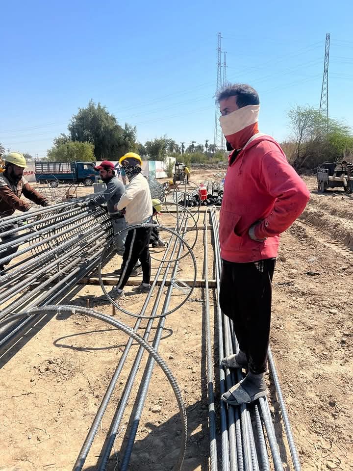المباشرة باعمال التسليح لجسر العزيزية الكونكريتي