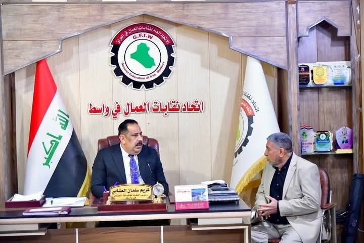 النائب الاداري لمحافظ واسط يجري زيارة الى مقر اتحاد نقابات العمال للاطلاع على واقع عمله وسبل النهوض بخدماته