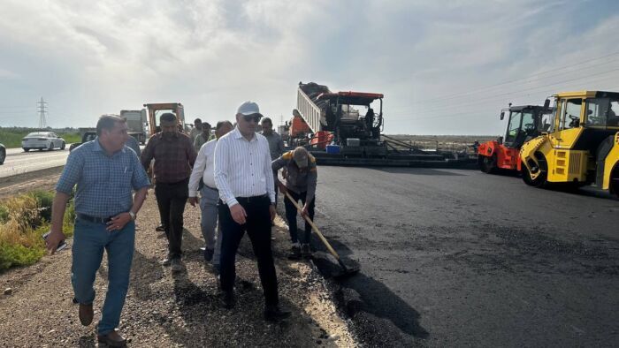 محافظ واسط يقف ميدانياً على مراحل الاكساء ضمن مشروع توسعة طريق كوت-بغداد ، ويجدد تأكيده على الالتزام بالمواصفات الفنية المحددة في الكشوفات.