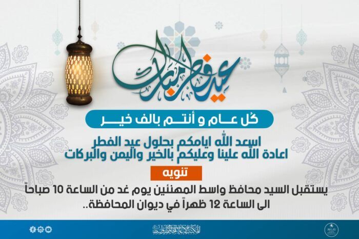 ❄️عيد فطر مبارك .. أعاده الله علينا وعليكم بالخير والمسرات .. نسأل الله أن يتقبل منا ومنكم صالح الأعمال و كل عام وانتم بخير.. 🔴تنويه يستقبل السيد محافظ واسط المهنئين…