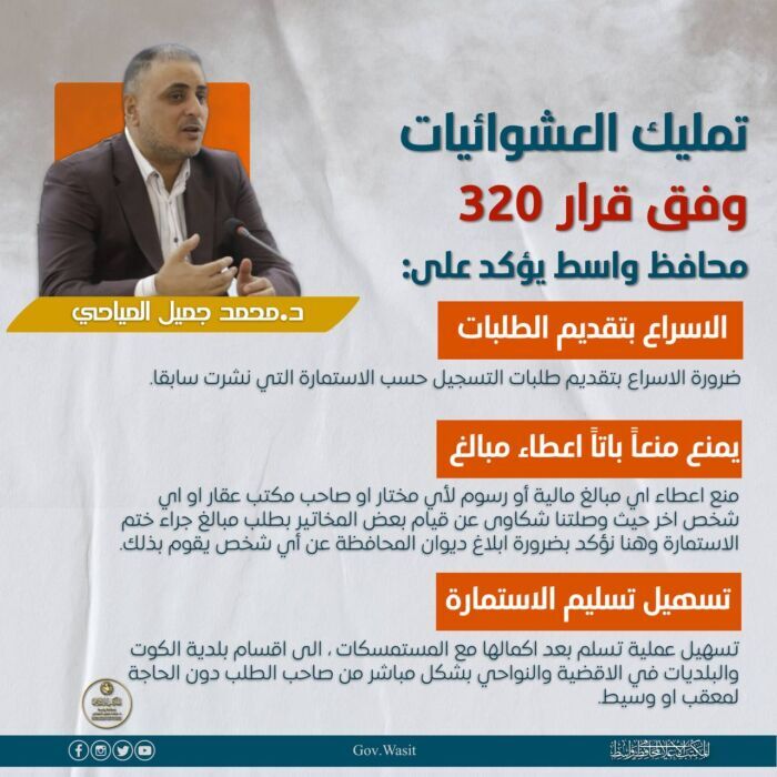 تخصيص 300 دونم في مدينة الكوت لاعلانها كفرصة استثمارية لبناء مجمع سكني ..
