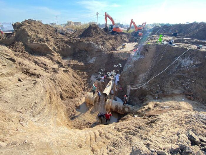اعمال صب قواعد المنهولات الخاصة بأعمال المجاري ضمن مشروع انشاء وتطوير جزء من المدخل الجنوبي لناحية الدبوني