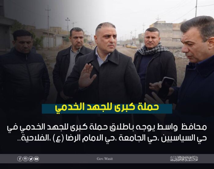 محافظ واسط يوجه بـ اطلاق حملة كبرى للجهد الخدمي في اربع احياء في مدينة الكوت