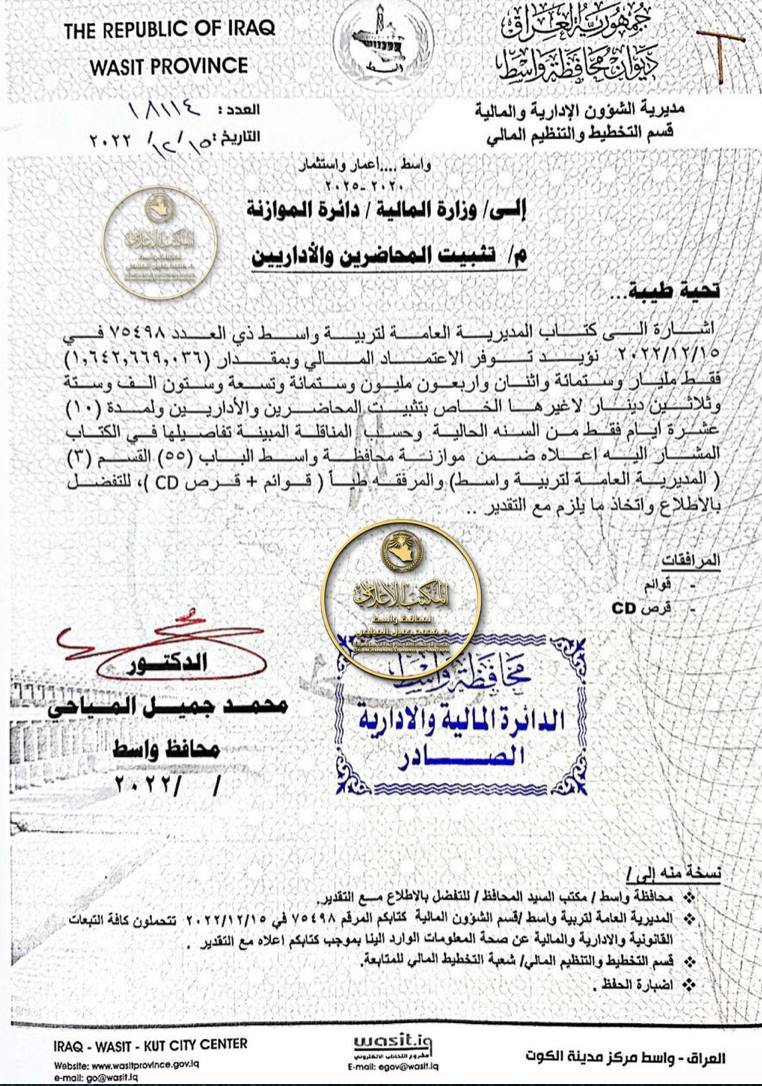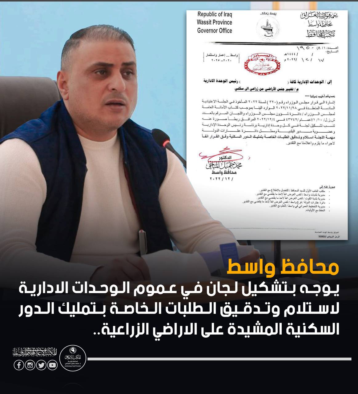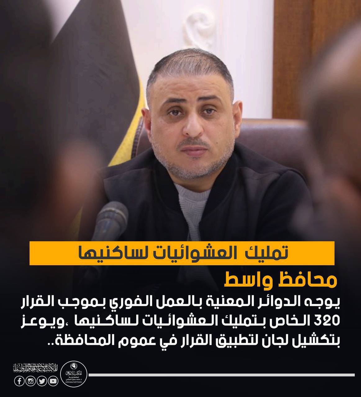 محافظ واسط د.محمد جميل المياحي : وفينا وعدنا بتوزيع 4000 قطعة أرض قبل نهاية العام وقد وفقنا لتوزيع أكثر من هذا العدد في مدة أقصر، ونعدكم من جديد بأننا مستمرون…