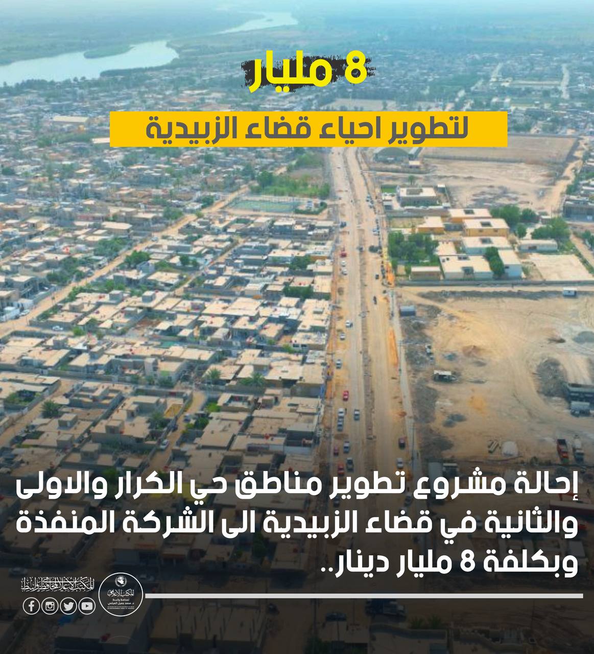 المباشرة بمراحل الاكساء بالاسفلت لمشروع تطوير مدخل كوت-بغداد والذي سيتم تأثيثه بالمتطلبات الحديثة.