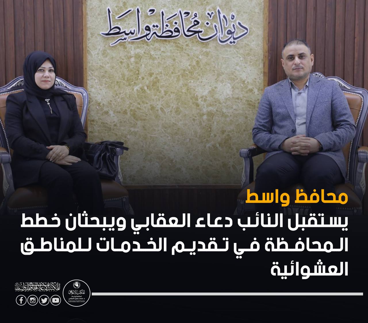محافظ واسط ،يبحث مع دولة رئيس مجلس الوزراء عدة ملفات منها: •ادامة زخم عمل المشاريع الخدمية في المحافظة. •ملف تمليك العشوائيات لساكنيها.