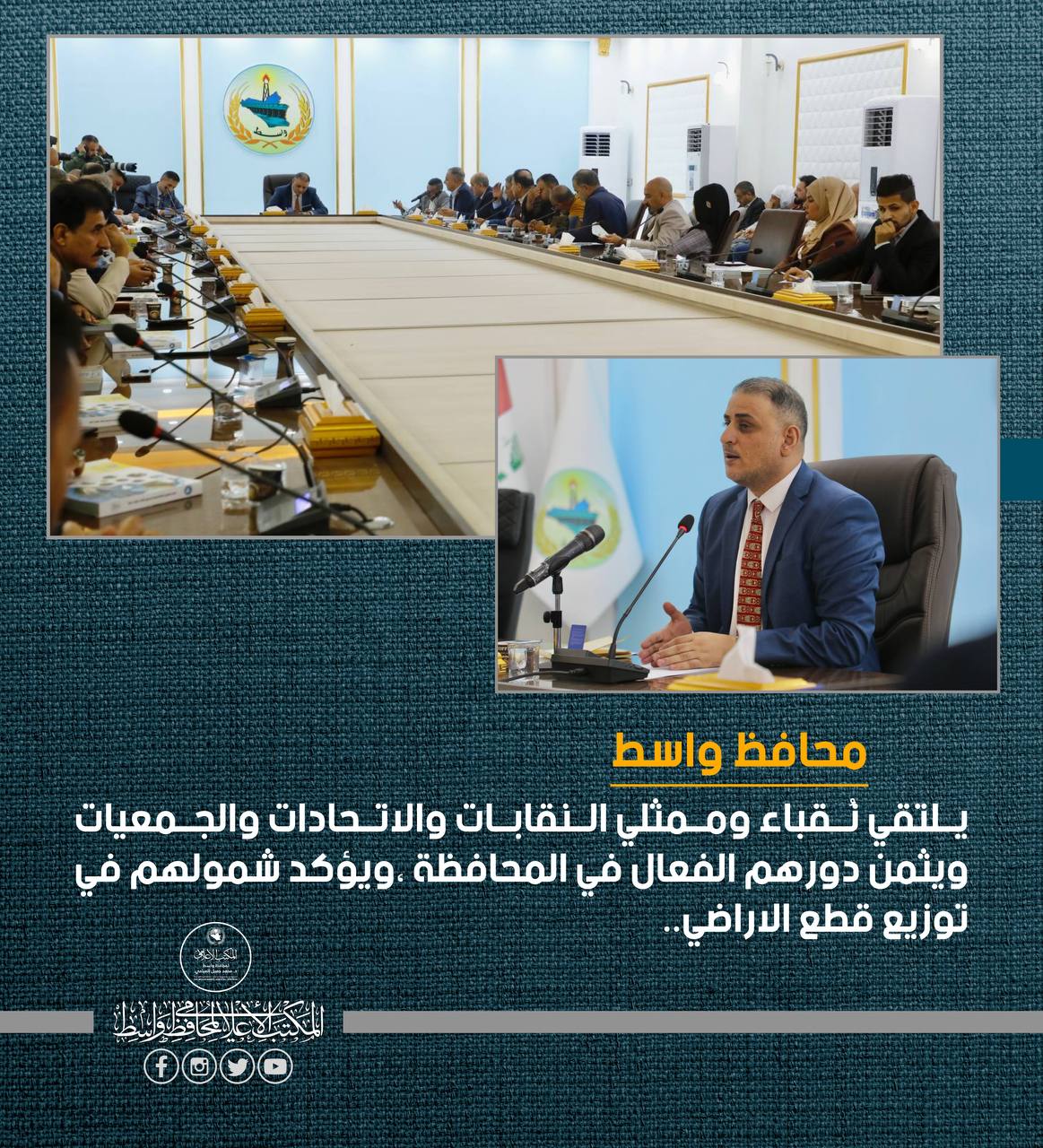 اهم ما جاء في لقاء محافظ واسط مع نُقباء وممثلي النقابات والاتحادات والجمعيات