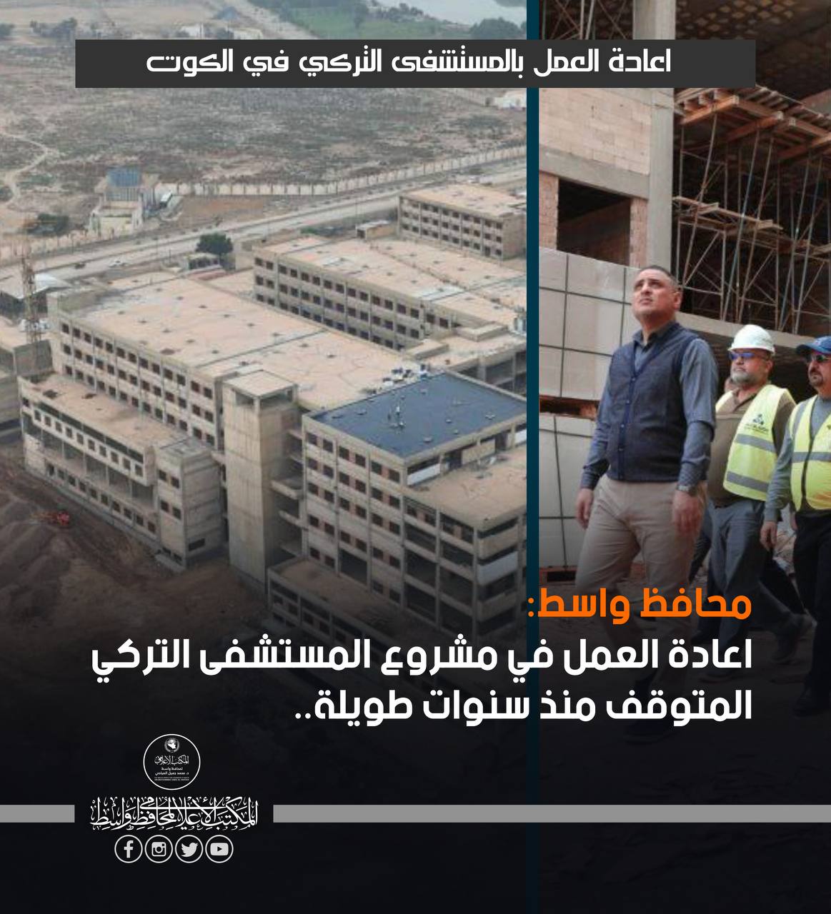 محافظ واسط: اعادة العمل في مشروع المستشفى التركي المتوقف منذ سنوات طويلة..