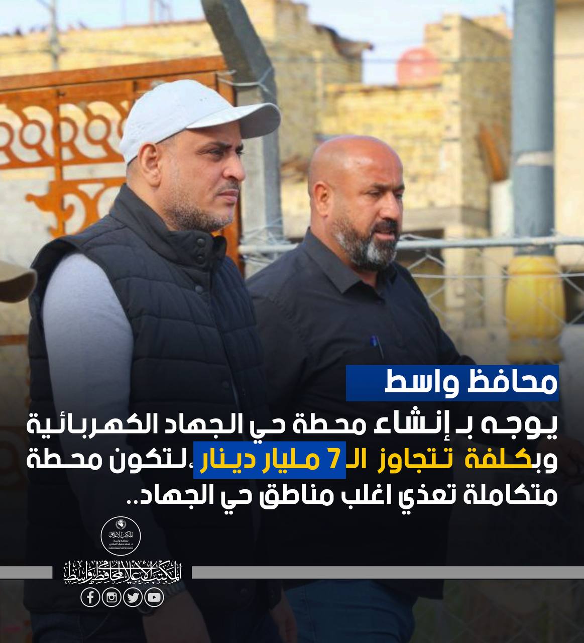 وجه محافظ واسط د. محمد جميل المياحي بإنشاء محطة كهرباء جديدة في حي الجهاد بكلفة تتجاوز الـ 7 مليار ، لتكون محطة متكاملة تغذي اغلب مناطق حي الجهاد.