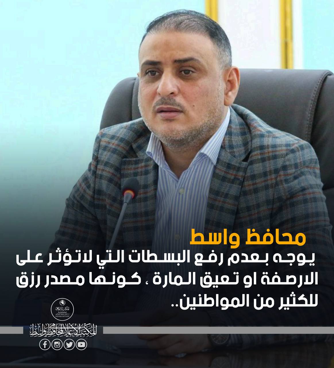 وجه محافظ واسط د. محمد جميل المياحي بعدم رفع البسطات التي لاتؤثر على الارصفة او تعيق المارة ، لحين توفر الاماكن البديلة ،كونها مصدر رزق للكثير من المواطنين.