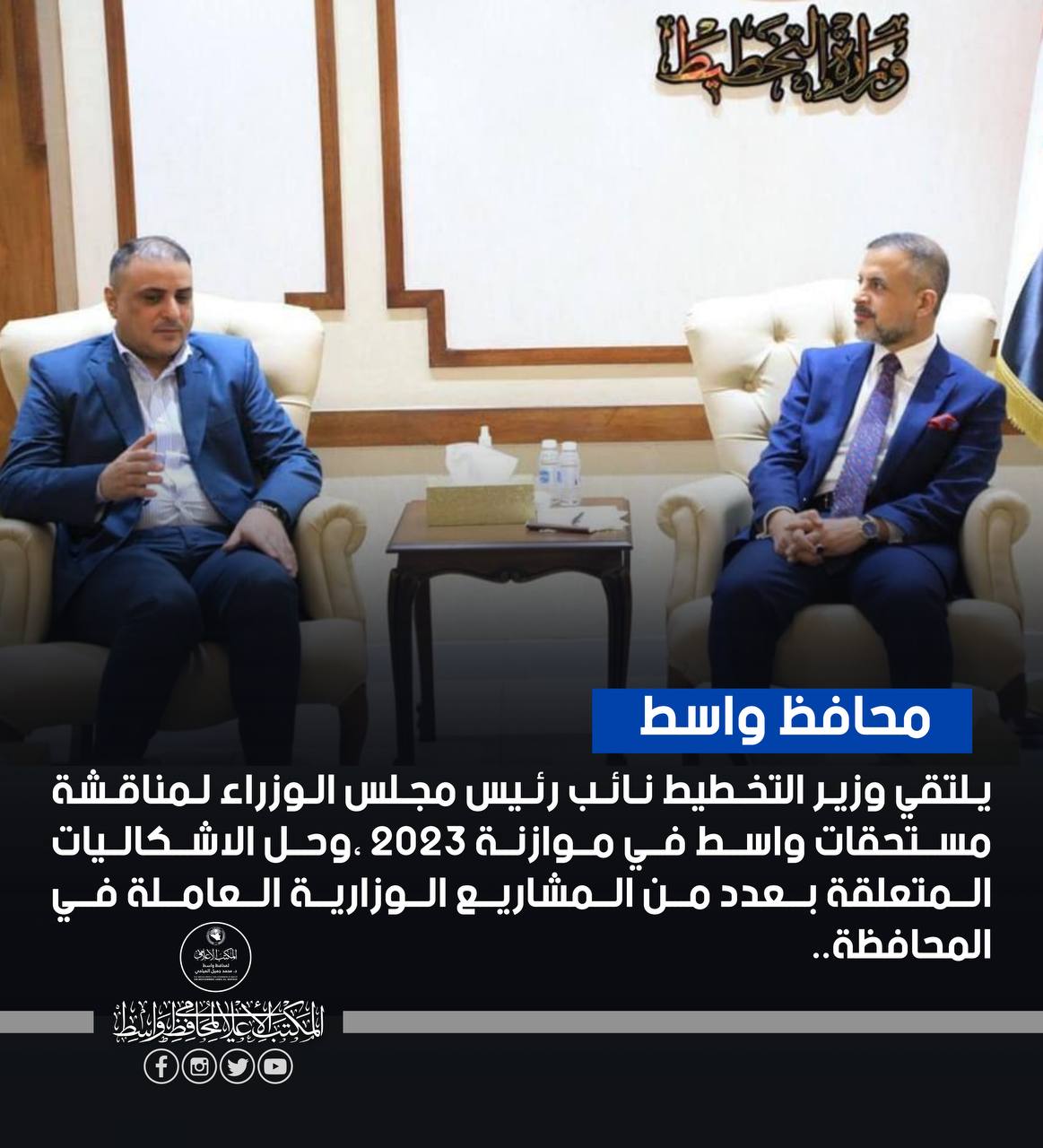محافظ واسط يلتقي وزير التخطيط لمناقشة مستحقات واسط في موازنة 2023