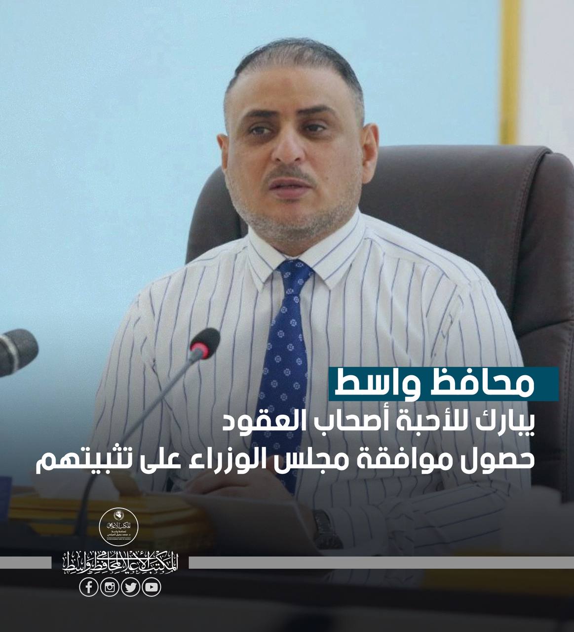 الاعلان عن اسماء الأحبة من موظفي العقود ممن لديهم خدمة (سنتين) المشمولين بالتثبيت على الملاك الدائم في كافة مديريات و دوائر محافظة واسط عبر الرابط التالي: t.me/Gov_Wasit