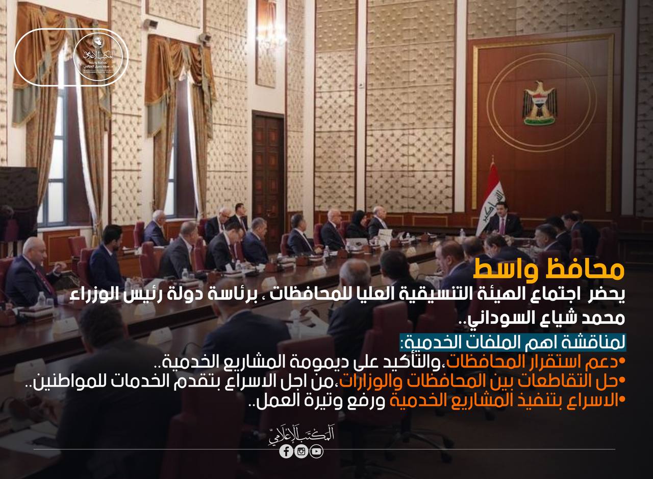 محافظ واسط يحضر اجتماع الهيئة التنسيقية العليا للمحافظات ، برئاسة دولة رئيس الوزراء محمد شياع السوداني