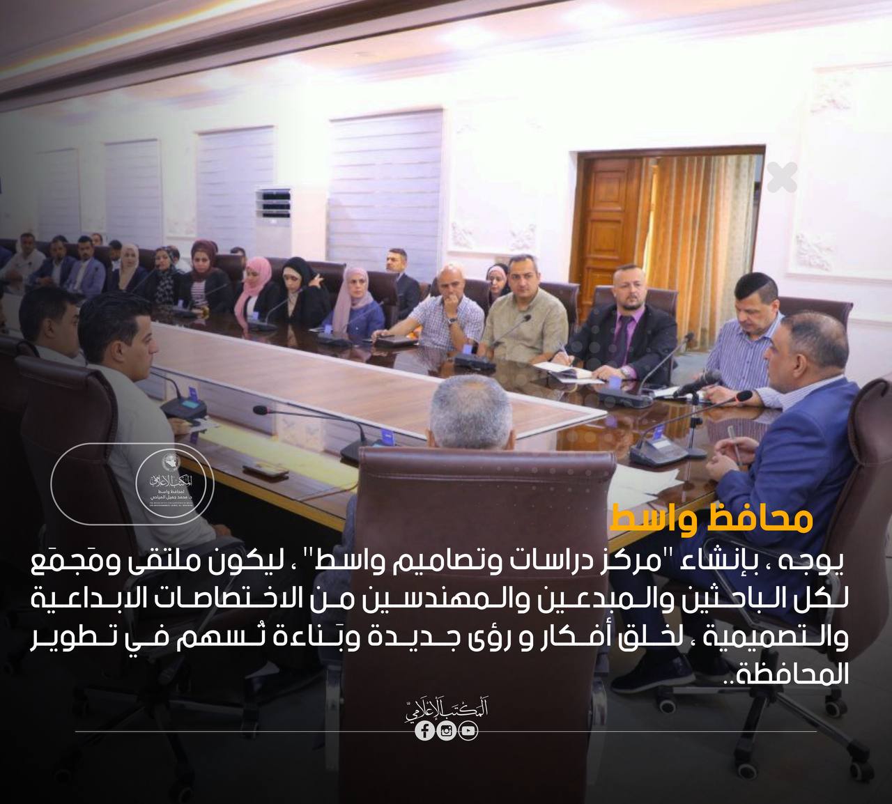 محافظ واسط يوجه بإنشاء (( مركز دراسات و تصاميم واسط))