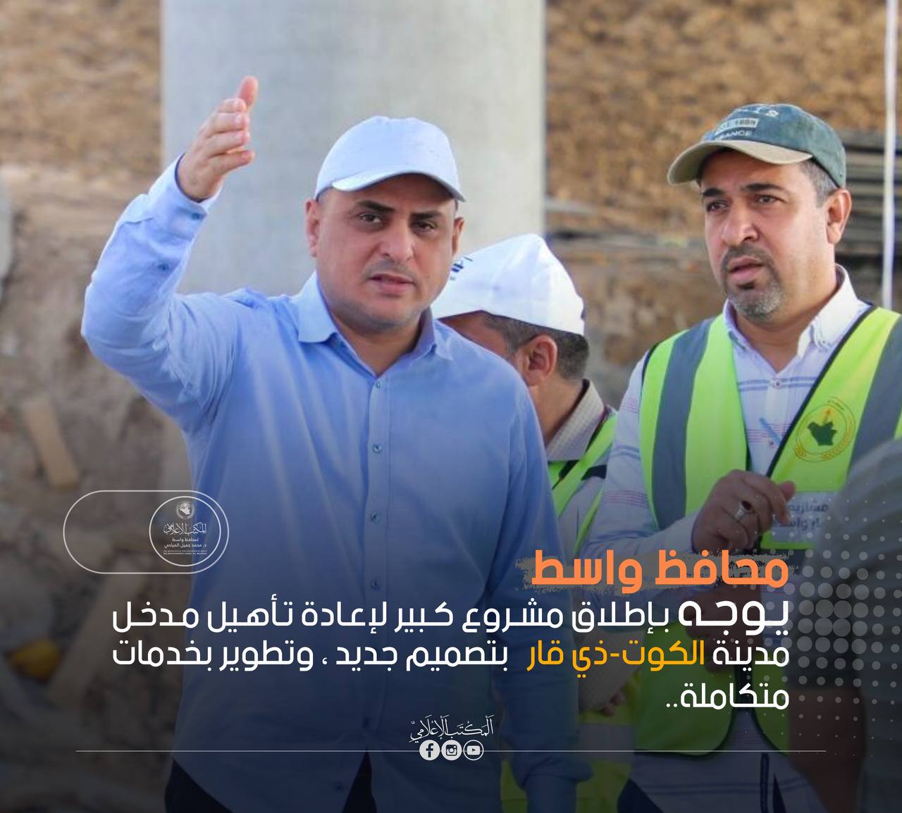محافظ واسط د.محمد جميل المياحي يوجه بإطلاق مشروع كبير لإعادة تأهيل مدخل مدينة #الكوت_ناصرية بتصميم جديد وتطويرهُ بخدمات متكاملة.