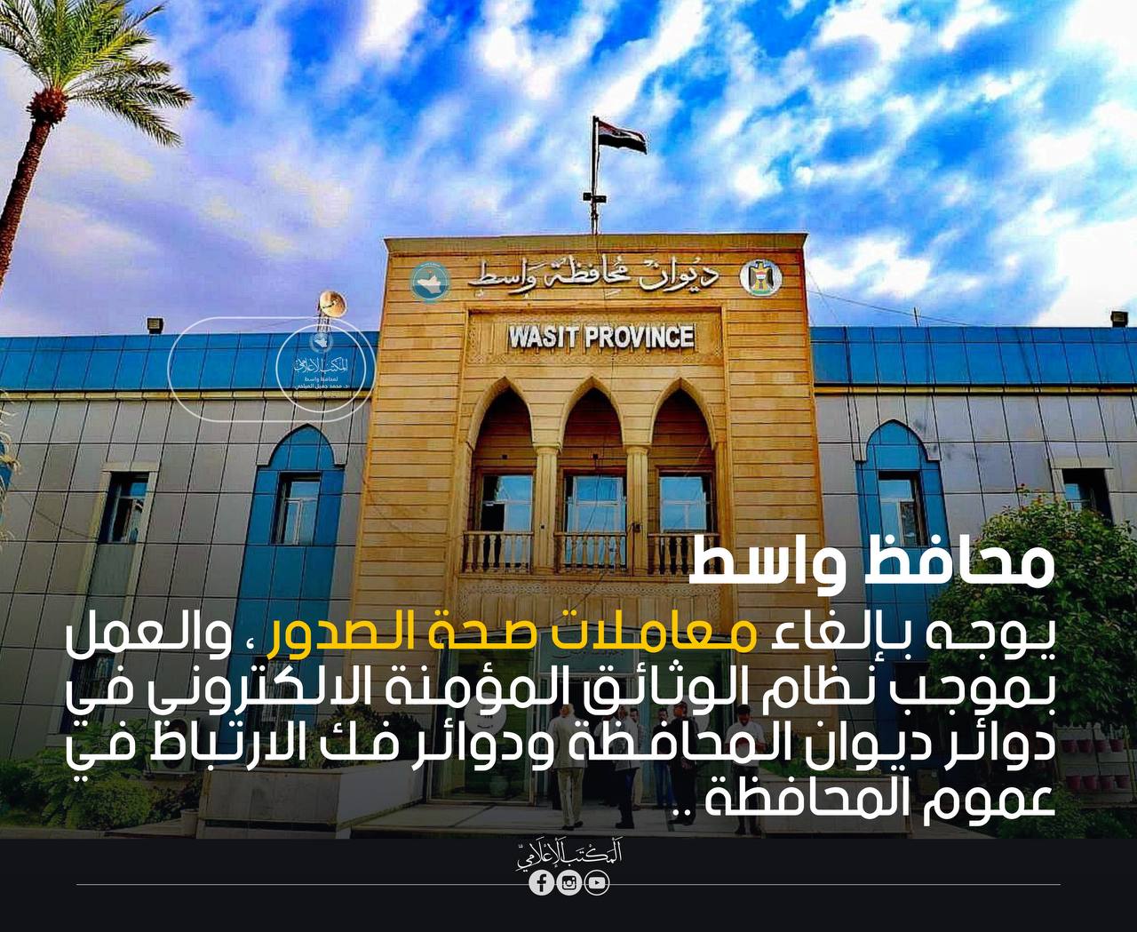 وجه محافظ واسط د.محمد جميل المياحي بإلغاء معاملات صحة الصدور ، والعمل بموجب نظام الوثائق المؤمنة الالكتروني في دوائر ديوان المحافظة ودوائر فك الارتباط في عموم المحافظة، لتكون واسط أول…