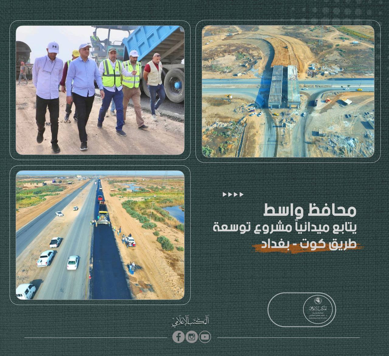 اكد محافظ واسط د. محمد جميل المياحي خلال متابعته الميدانية لمشروع توسعة طريق #كوت_بغداد ان العمل مستمر في المرحلة الأولى من المشروع ، والتي تتضمن توسعة الطريق 12م ذهاباً واياباً…