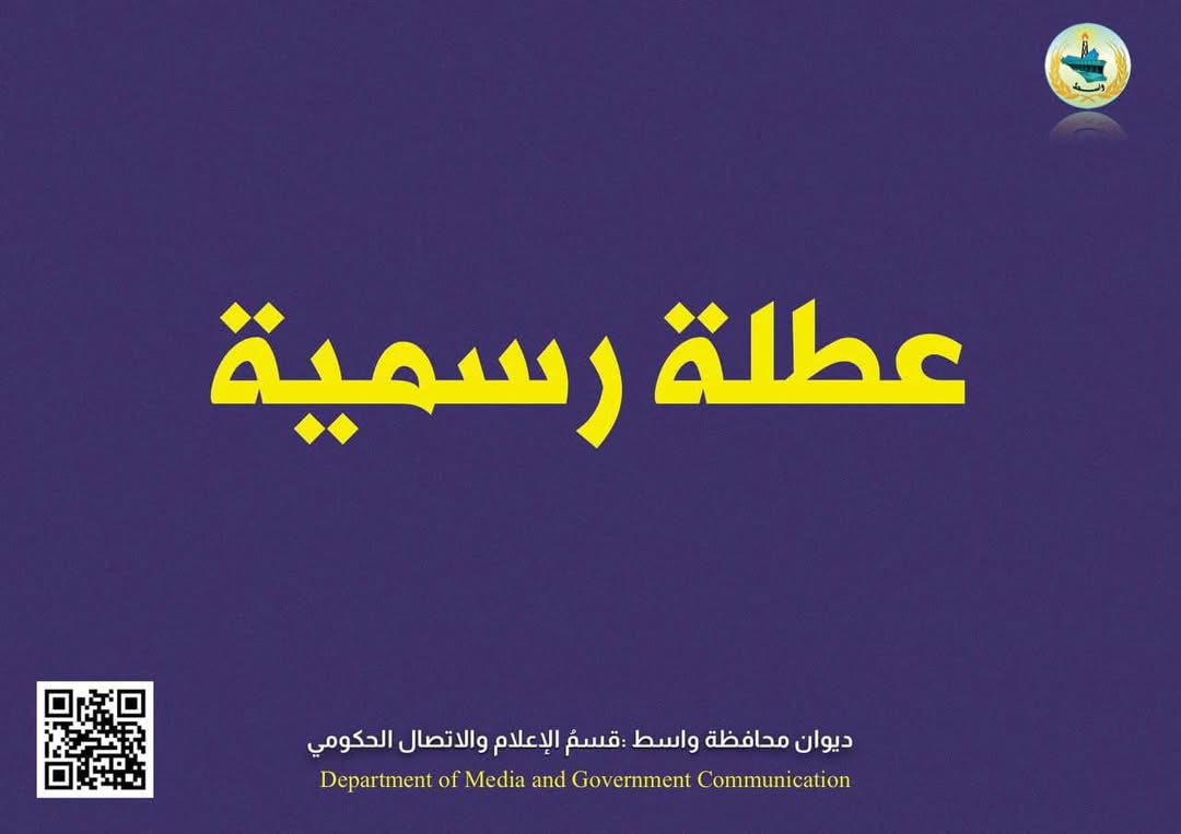 محافظ واسط يعلن عن تعطيل الدوام الرسمي ليوم غد الاحد