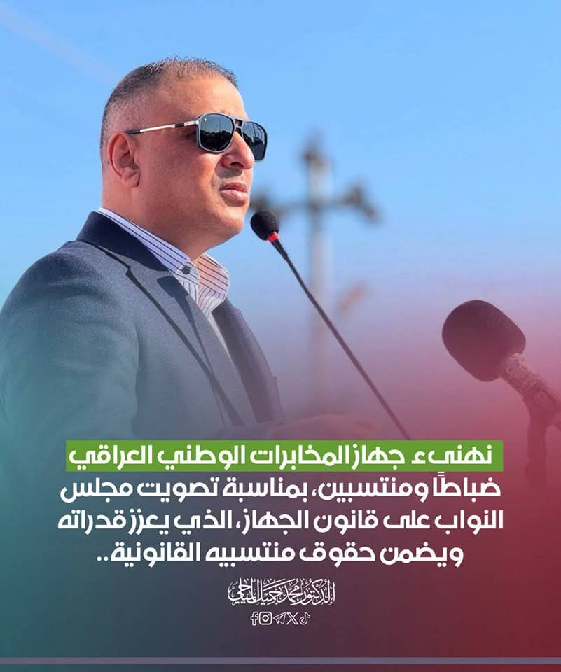 تقدم السيد محافظ واسط بالتهنئة لأبطال جهاز المخابرات الوطني العراقي ،بمناسبة تصويت مجلس النواب العراقي على اقرار قانون الجهاز .
