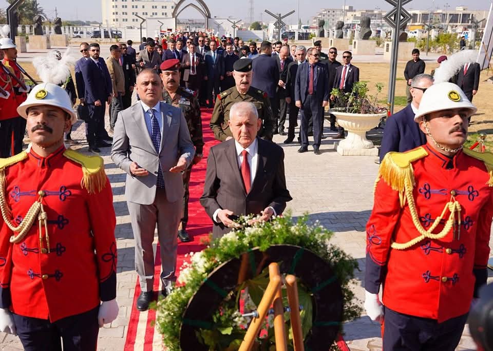 فخامة رئيس الجمهورية يضع اكاليل من الزهور على نصب شهداء سبايكر و الكرد الفيلية