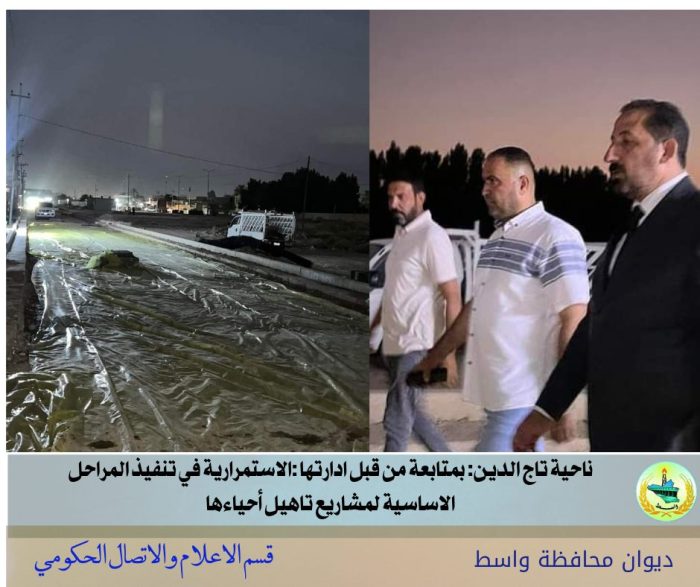 ناحية تاج الدين بمتابعة من قبل ادارتها :تشهد الاستمرارية في تنفيذ المراحل الاساسية لمشاريع تاهيل أحياءها